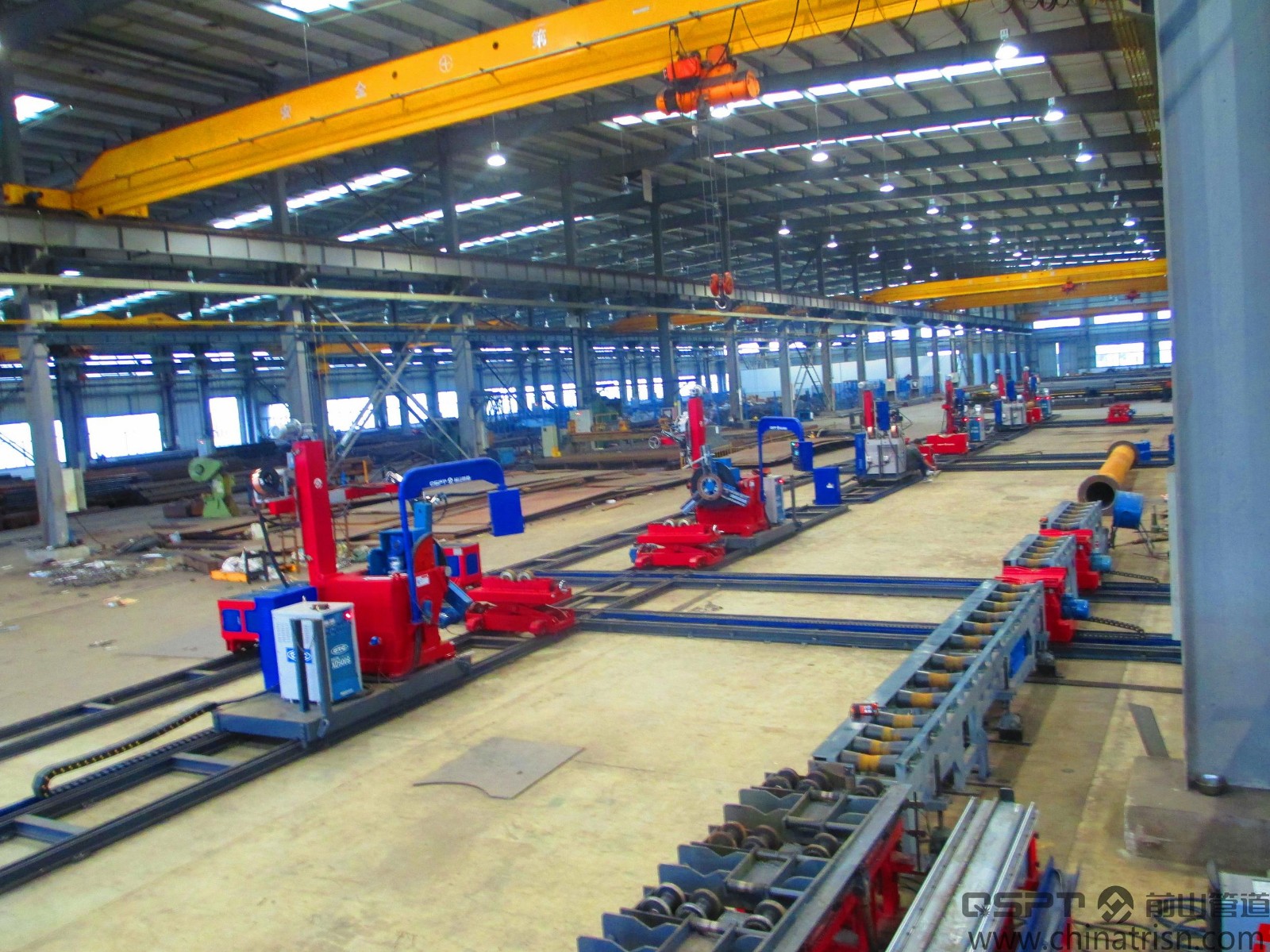 性能特点:利用坡口切割机进行管子切割、采用机械组对中心进行管段的高效组对、利用自动焊接中心进行管段的自动焊接、利用电瓶或低压滑线取电输送系统进行管子的长距离高效运输、利用横向物流输送系统及纵向物流输送系统、实现高效安全可靠的地面输送系统